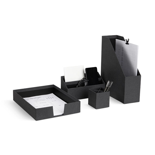 Dankzij de verschillende elementen in deze bureau organizers set heb je altijd een plek voor documenten, pennen, tijdschriften en andere kantoorbenodigdheden. Alles blijft overzichtelijk en binnen handbereik.