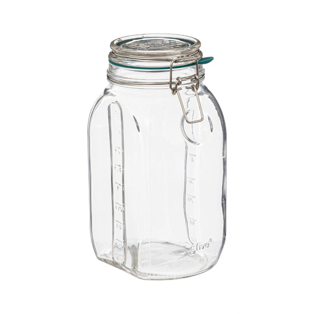 De extra ruime glazen weckpot van 2 liter van Five® is ideaal voor het luchtdicht bewaren van grotere hoeveelheden droge of vloeibare etenswaren. Dankzij het slimme design blijft je voorraad overzichtelijk en gemakkelijk toegankelijk.
