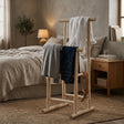 Deze dressboy is ideaal om kleding klaar te leggen voor de volgende dag of om gedragen kleding netjes te laten luchten. Door het slanke ontwerp plaats je hem eenvoudig naast een kast, bed of in een badkamerhoek. De natuurlijke houtkleur geeft het meubel een warme uitstraling, waardoor het zowel functioneel als decoratief is.