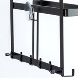 Het industriële keukenrek met keukenrolhouder is van hoogwaardig zwart gepoedercoat metaal en is 30 cm breed, 9 cm diep en 33 cm hoog. Dit topkwaliteit wandrek voor in de keuken biedt opbergruimte voor onder andere keukengerei, kruidenpotjes, voorraadpotten en een keukenrol. Kan worden opgehangen met de meegeleverde schroeven en pluggen of zonder te boren met de ijzersterke Turbo-Loc kleefpads die apart besteld moeten worden.