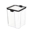 De voorraadbussen zijn gemaakt van transparant BPA-vrij kunststof, waardoor je altijd direct ziet wat erin zit. Ze zijn vaatwasserbestendig, diepvriesgeschikt én bestand tegen UV-straling en schokken. De stevige clips aan de zijkanten zorgen voor een luchtdichte sluiting, waardoor je voeding optimaal beschermd blijft tegen lucht en vocht. Verkrijgbaar in 1.4 liter, 2.75 liter en 4 liter – ideaal voor het bewaren van koekjes, pasta of snoep, zelfs in diepe lades dankzij het heldere deksel. De afmetingen zijn als volgt: