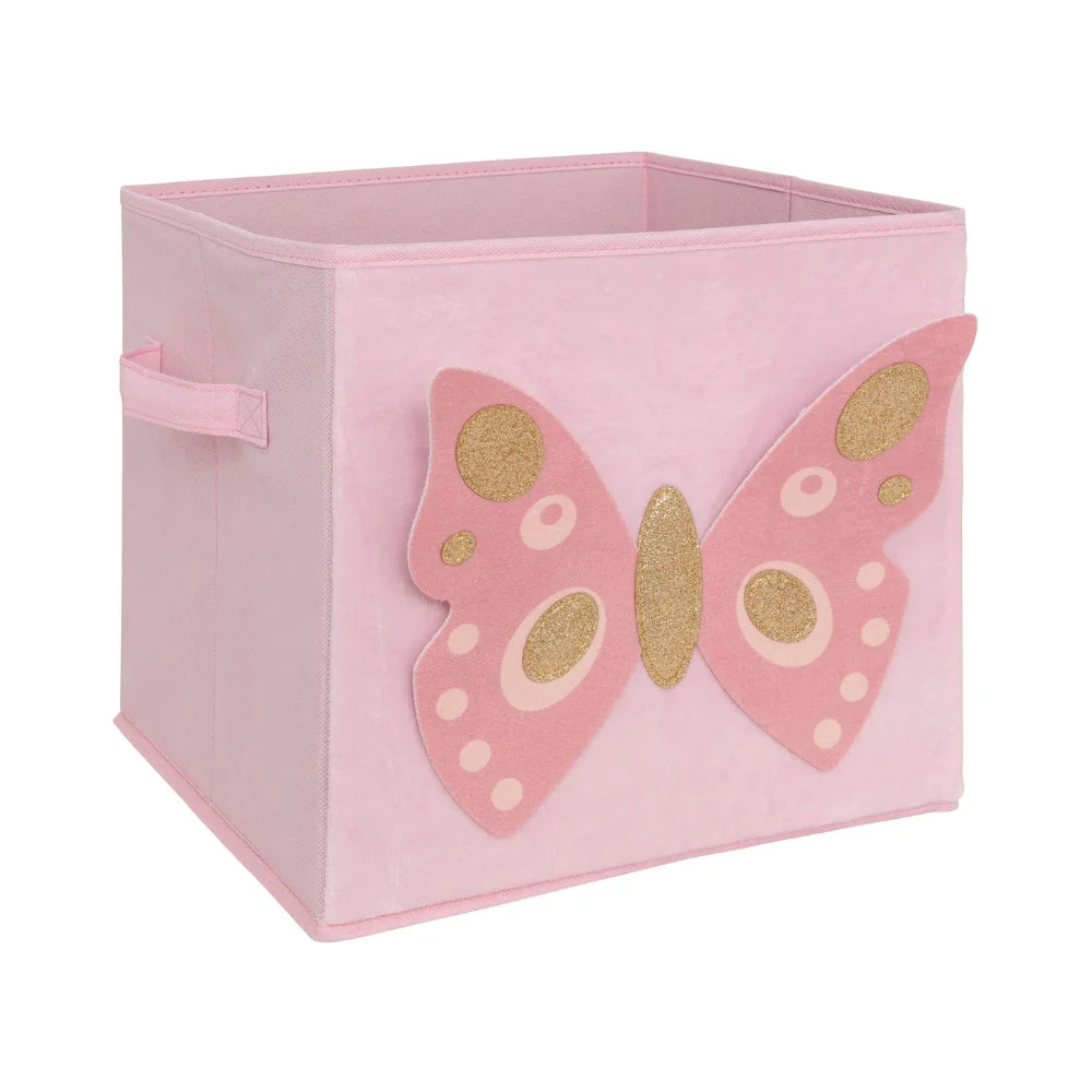 Deze opbergmand kinderkamer is een praktische en decoratieve oplossing om speelgoed en andere spulletjes netjes op te bergen. Het roze vlinder design op de voorzijde geeft de mand een zachte, speelse uitstraling en maakt hem een mooie toevoeging aan iedere kinderkamer.