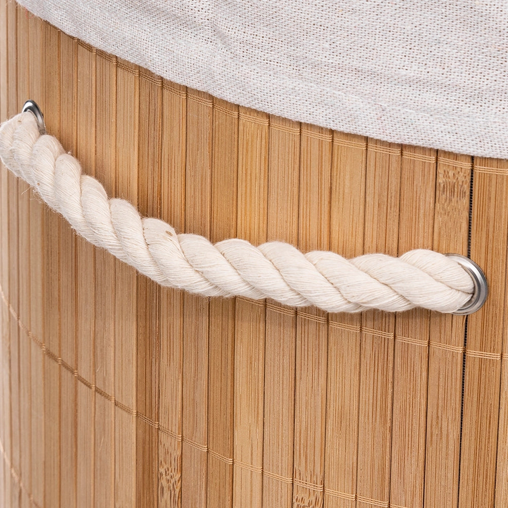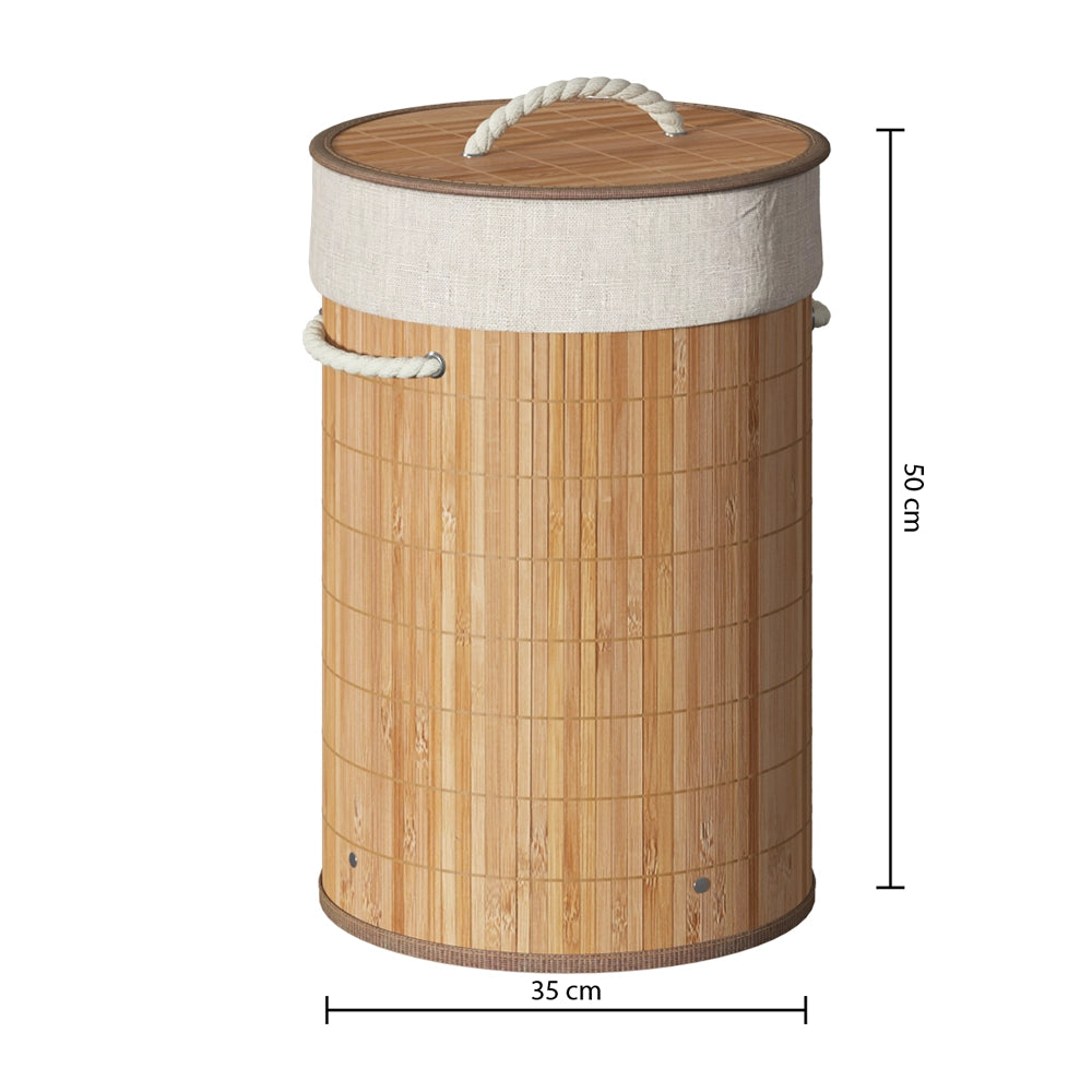 Deze ronde bamboe wasmand heeft een diameter van 35 cm en is 50 cm hoog, met een gemiddelde inhoud van 48 liter is deze geschikt voor een gemiddelde hoeveelheid was. Gemaakt van bamboe, straalt deze wasmand natuurlijke schoonheid uit en voegt een vleugje rustieke charme toe aan elke kamer. De wasmand wordt geleverd met een uitneembare binnenzak van polyester, waardoor het gemakkelijk is om je wasgoed te transporteren.