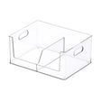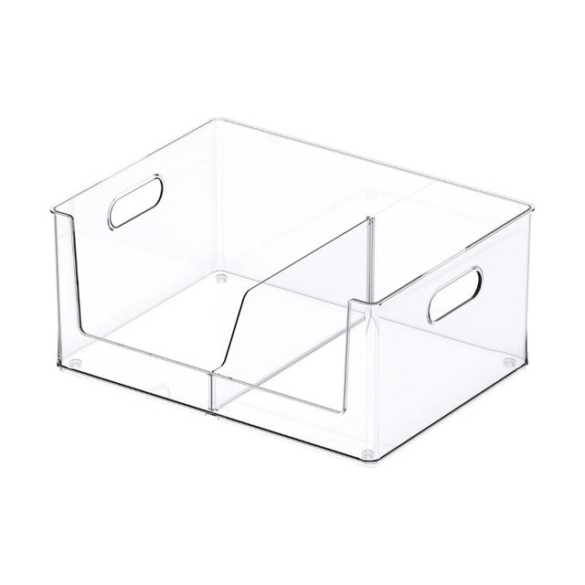 De opbergbak is gemaakt van hoogwaardig PET kunststof en combineert stevigheid met een heldere uitstraling. Dankzij het sterke materiaal is de bak geschikt voor intensief dagelijks gebruik. De geïntegreerde handgrepen maken het eenvoudig om de bak te verplaatsen en de anti-slip pootjes zorgen ervoor dat hij stabiel op zijn plek blijft staan. Deze variant is voorzien van een uitneembare verdeler, waardoor je eenvoudig verschillende producten van elkaar scheidt en georganiseerd bewaart. Beschikbaar in 3 formaten: