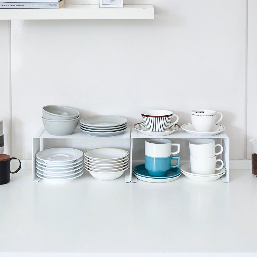 Dit metalen rekje voor in de keuken kun je op verschillende manieren inzetten. Haal het meeste uit je keukenruimte en creëer meer opbergruimte met dit stapelbare keukenkast rek.