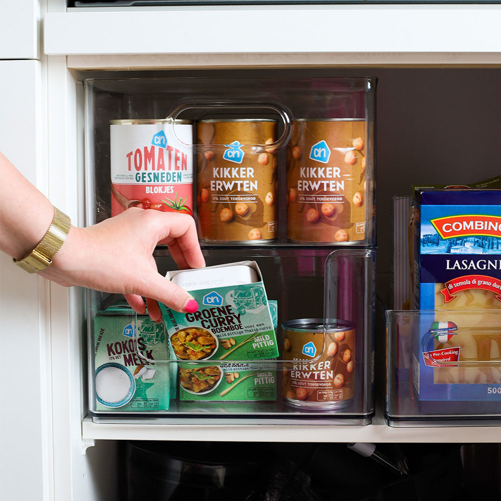 Deze opbergbox van The Home Edit is een handige organizer voor al je voorraadproducten. Stapel meerdere opbergboxen op elkaar om je gehele voorraadkast op te ruimen.