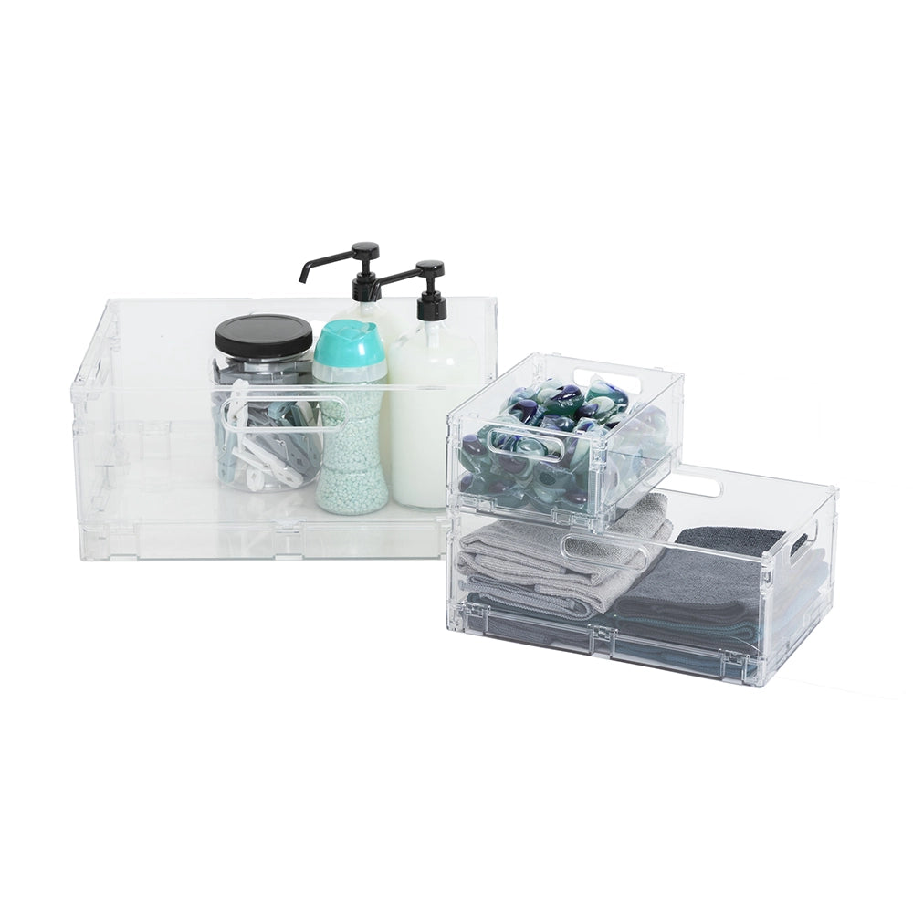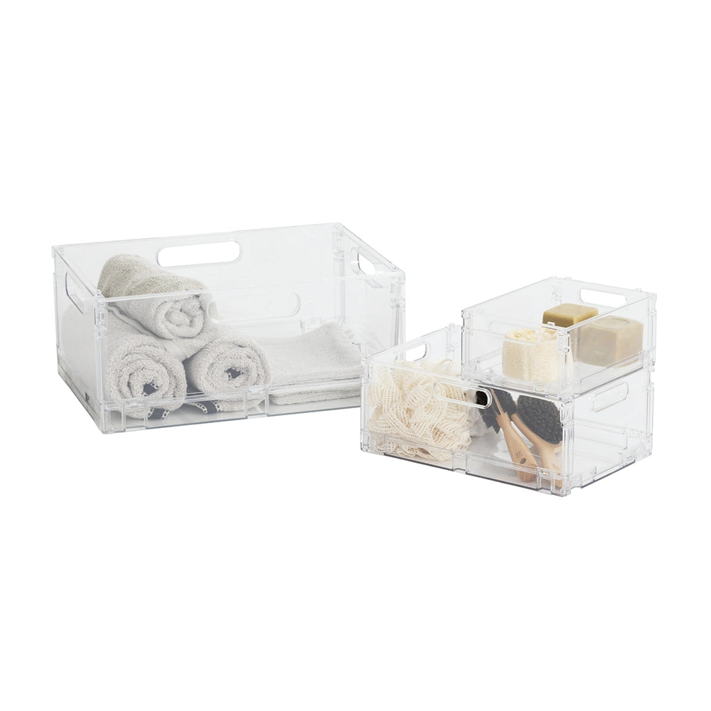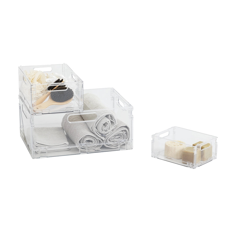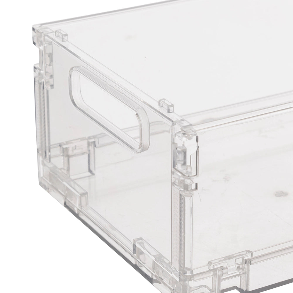 Het transparante kratje van Five® is een stijlvolle en praktische opbergoplossing voor in huis, op kantoor of in de badkamer. Dit transparante, inklapbare kratje is gemaakt van hoogwaardig kunststof en combineert functionaliteit met een strak design.