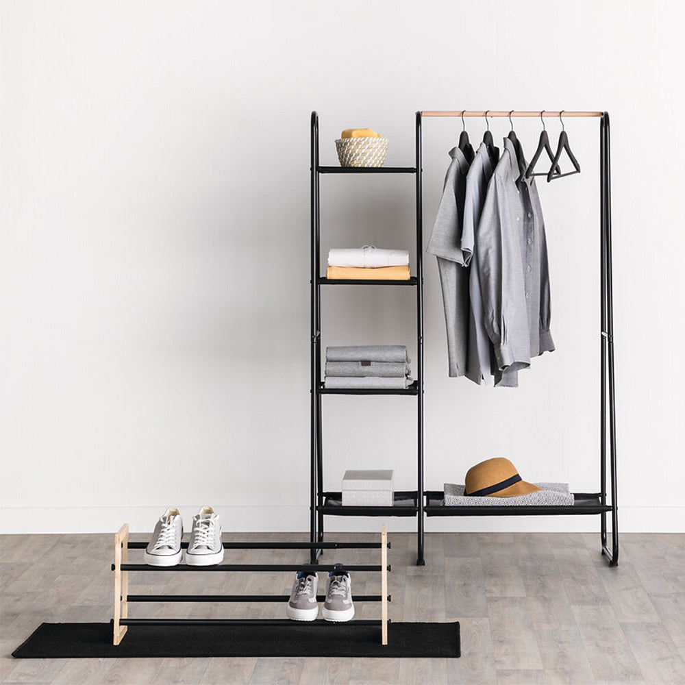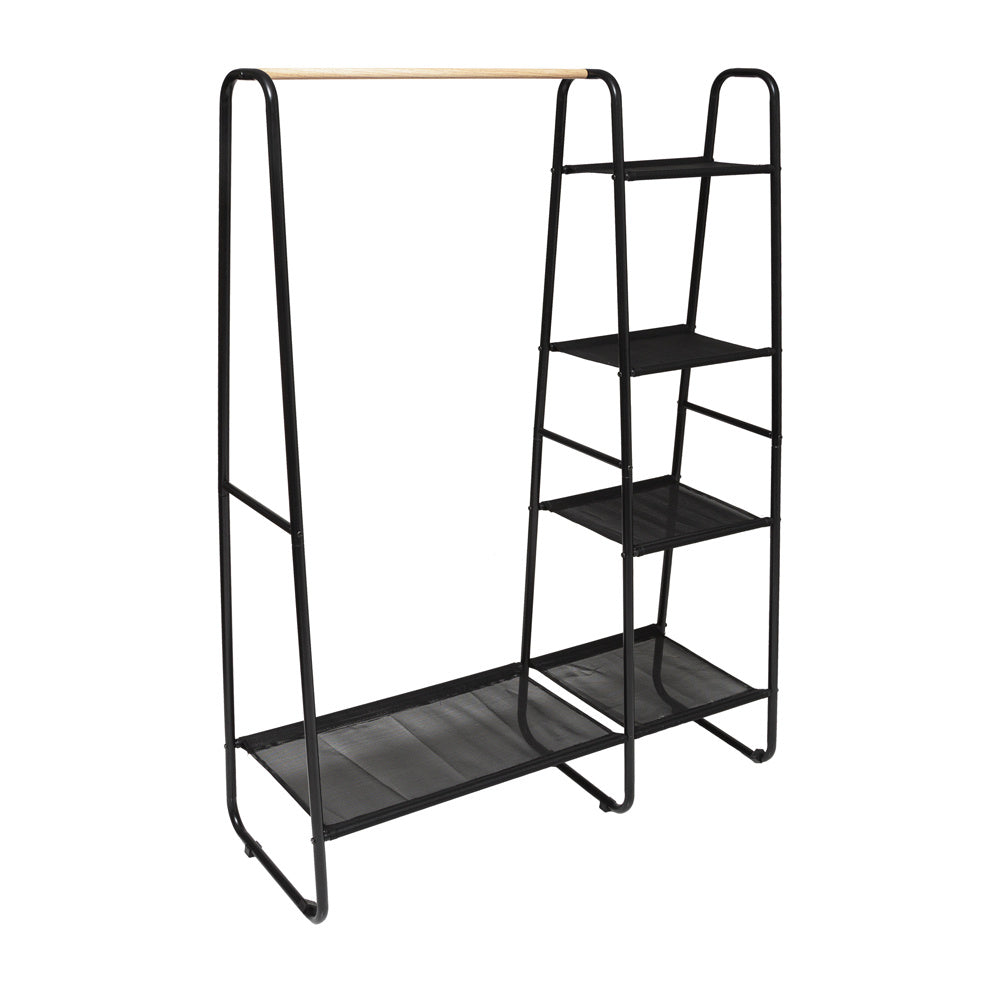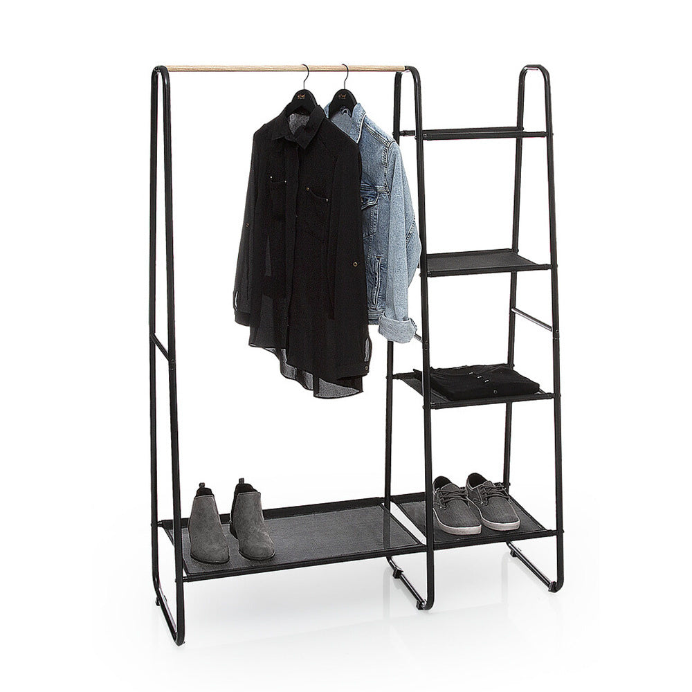 Zwart kledingrek met verschillende opbergmogelijkheden