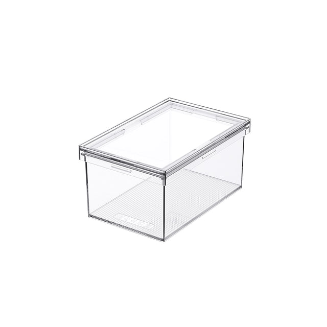De voorraadbus is gemaakt van hoogwaardig, BPA-vrij PET kunststof en straalt kwaliteit uit. Het moderne ontwerp met strakke hoeken zorgt ervoor dat meerdere voorraadbussen mooi naast en op elkaar staan. Ook de deksels zijn volledig transparant – ideaal wanneer je de voorraadbus in een diepe lade gebruikt of snel overzicht wilt houden in de voorraadkast. De volgende formaten zijn beschikbaar van deze collectie: